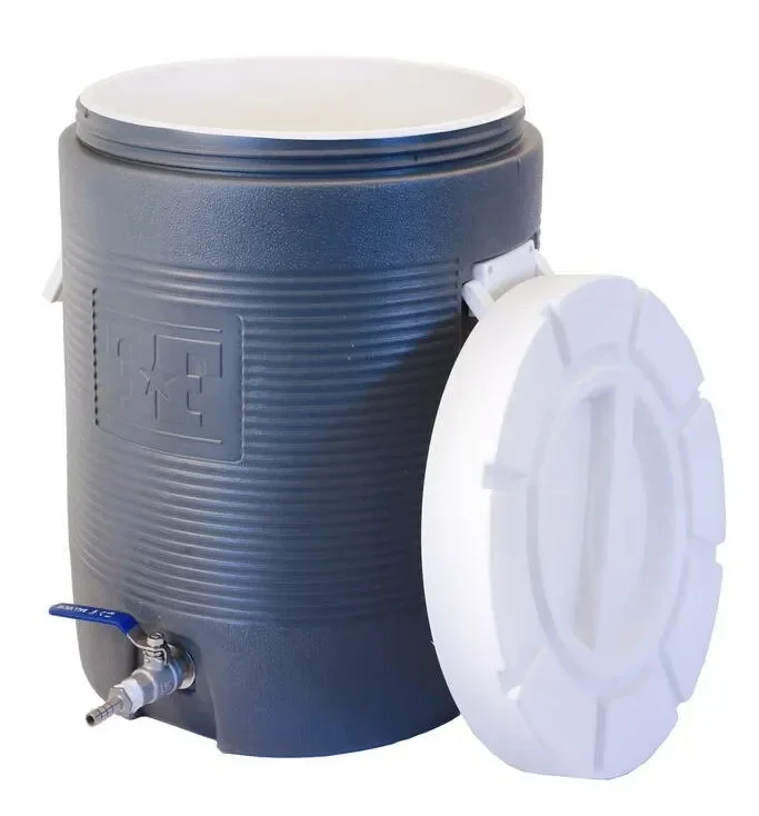 Mäskkärl i plast 43L med tappkran i rostfritt