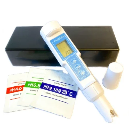 Trekalibreringspunkter. Buffertlösningar för kalibrering medföljer, pH 4.01 pH, pH 6.86 och pH 9,18.