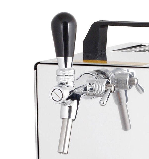 Levereras komplett med tappkran med flödesreglering, tapphandtag och en rostfri spillbricka.