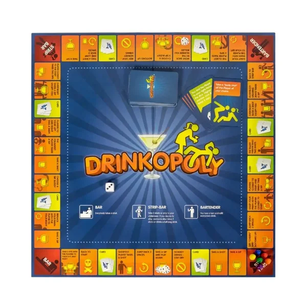 Drinkopoly är ett festligt och interaktivt brädspel som kombinerar klassiska regler med utmaningar och drickrelaterade aktiviteter. Spelet är designat för att skapa en livlig och social atmosfär bland spelarna.