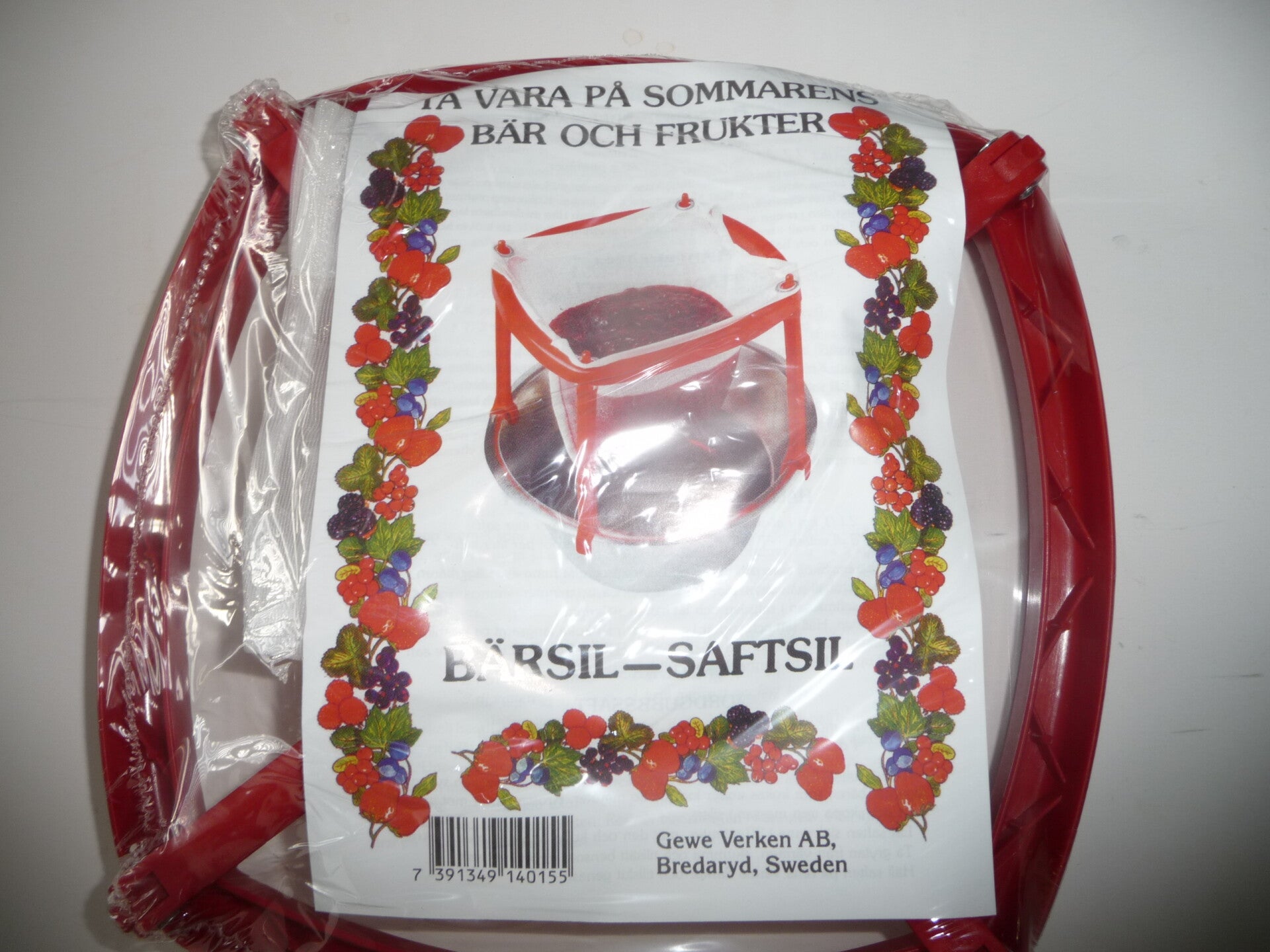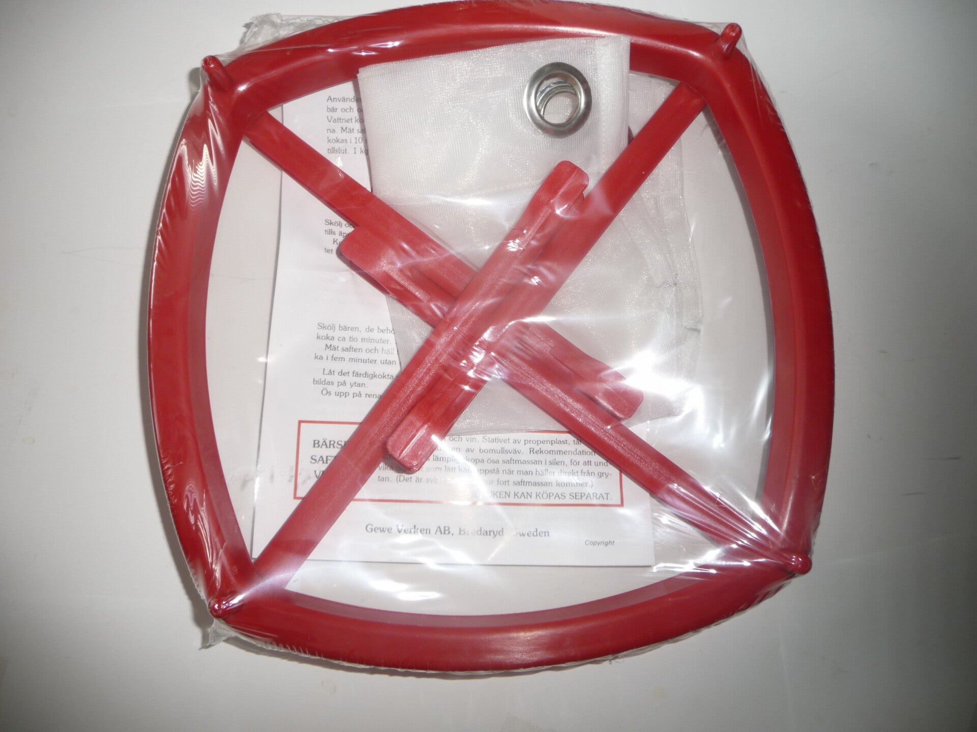 Klassisk saftsil i plast med 4 armar för olika hinkar.Lev.med en saftsilsduk i nylon.